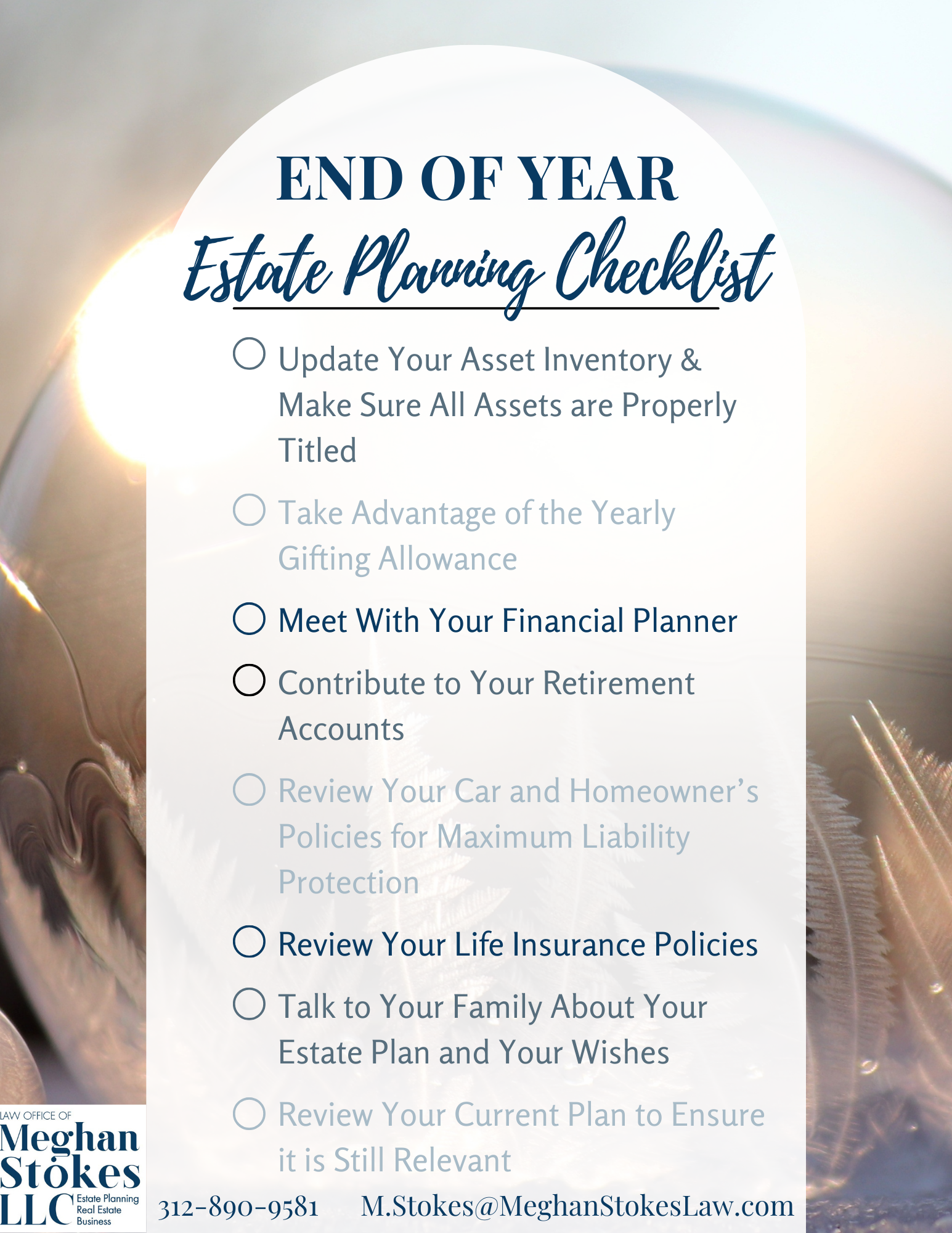 Want help completing Your End of the Year Estate Planning Checklist? Email us at m.stokes@MeghanStokesLaw.com or give us a call at 312-890-9581.